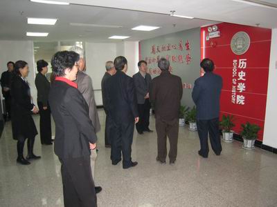 3月27日下午,北京市教工委高校党建先进校复查专家组唐立军(中共北京市委教育工委委员、干部处处长)、李玉书(原中央财经大学党委副书记)、孙祖国(市委教育工委联络员、原北京理工大学纪委书记)、刘政(市委教育工委联络员,原北京成人教育学院院长)、胡洁(北京市教委监察处副处长)、刘培元(中共北京市委教育工委组织处主任科员)来我院检查工作,参观了历史学院文化走廊。