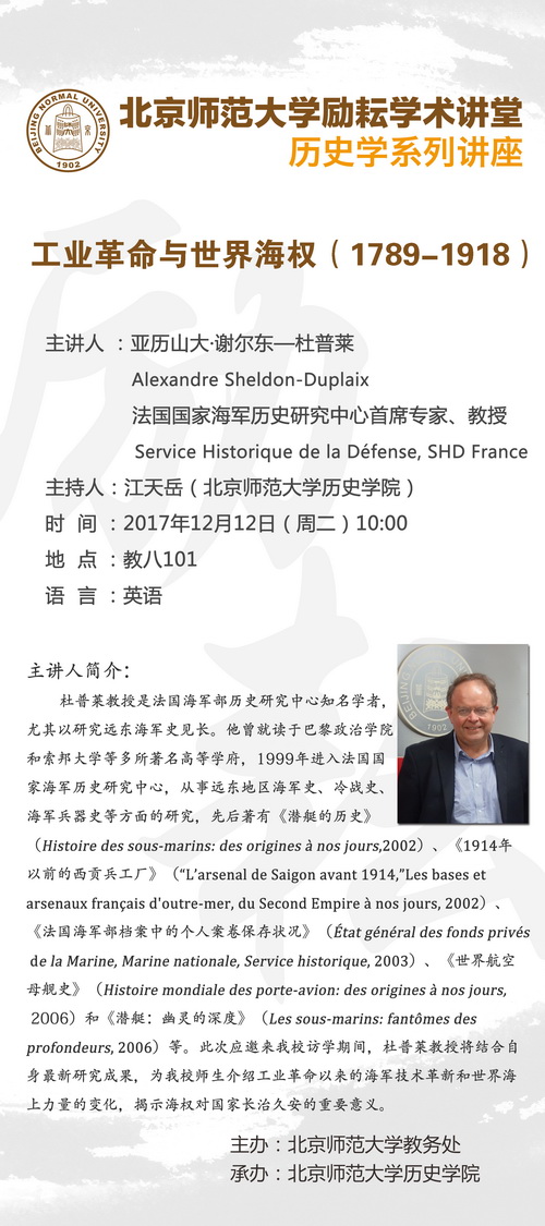 【励耘讲堂】亚历山大·谢尔东—杜普莱:工业革命与世界海权(1789-1918)