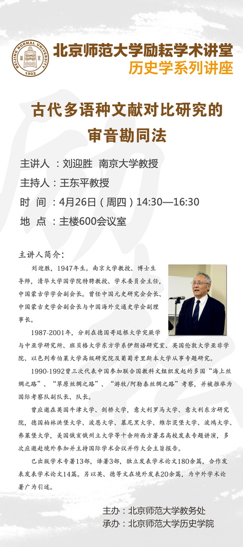 【励耘讲堂】刘迎胜:古代多语种文献对比研究的审音勘同法