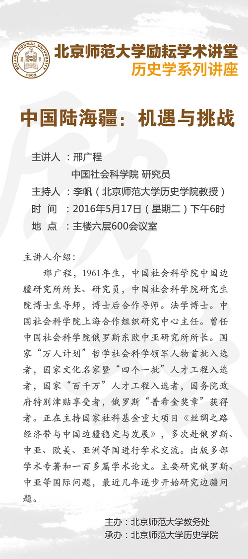 【励耘讲堂】邢广程:中国陆江海:机遇与挑战