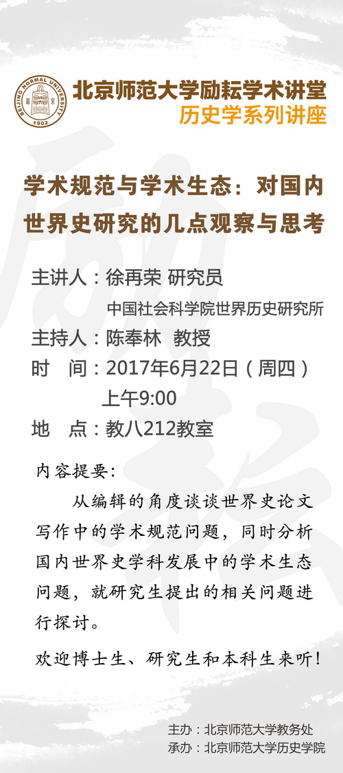 【励耘讲堂】徐再荣:学术规范与学术生态:对国内世界史研究的几点观察与思考