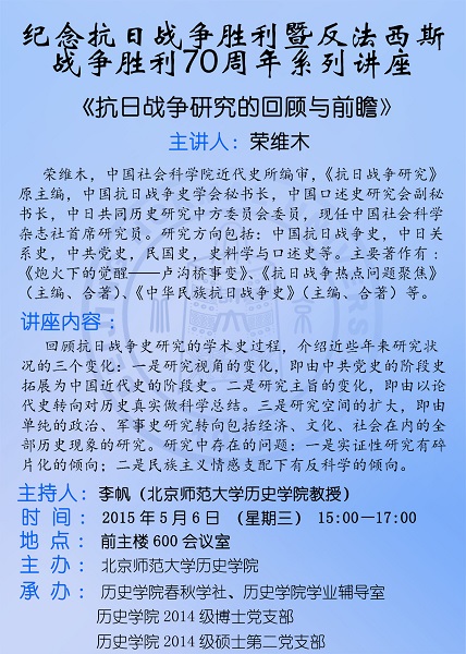 【学术讲座】荣维木:抗日战争研究的回顾与前瞻