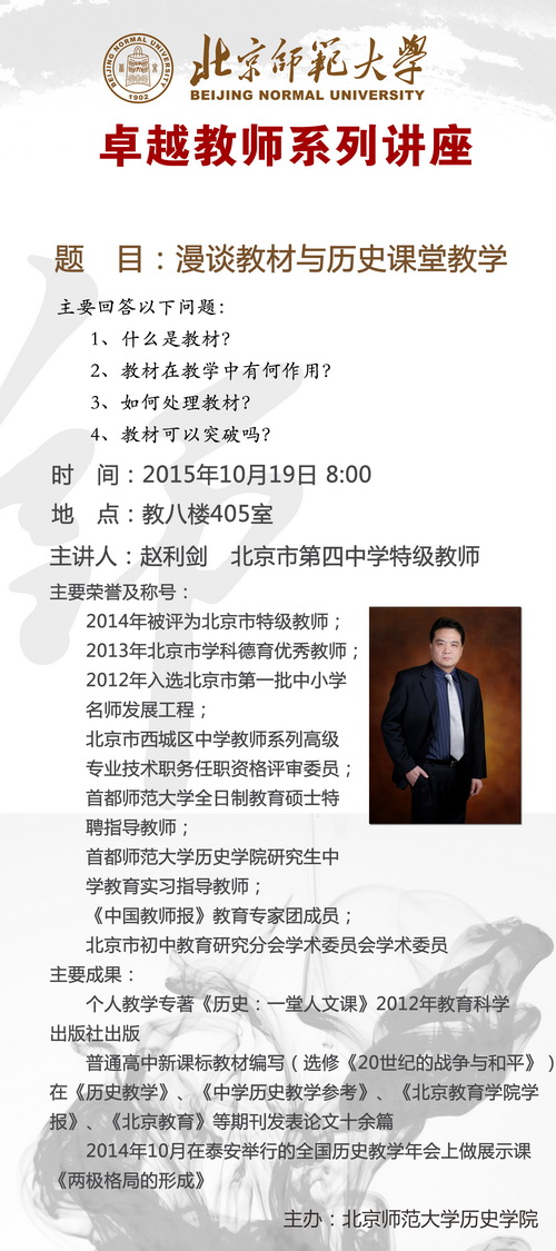 【教育名师讲座】赵利剑:漫谈教材与历史课堂教学