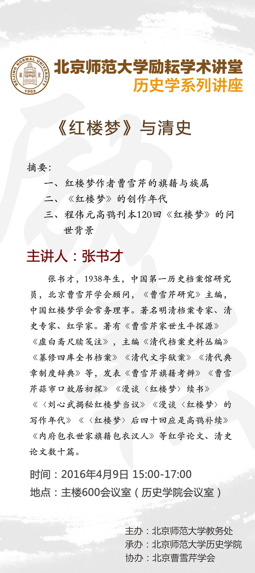 【励耘讲堂】张书才:《红楼梦》与清史