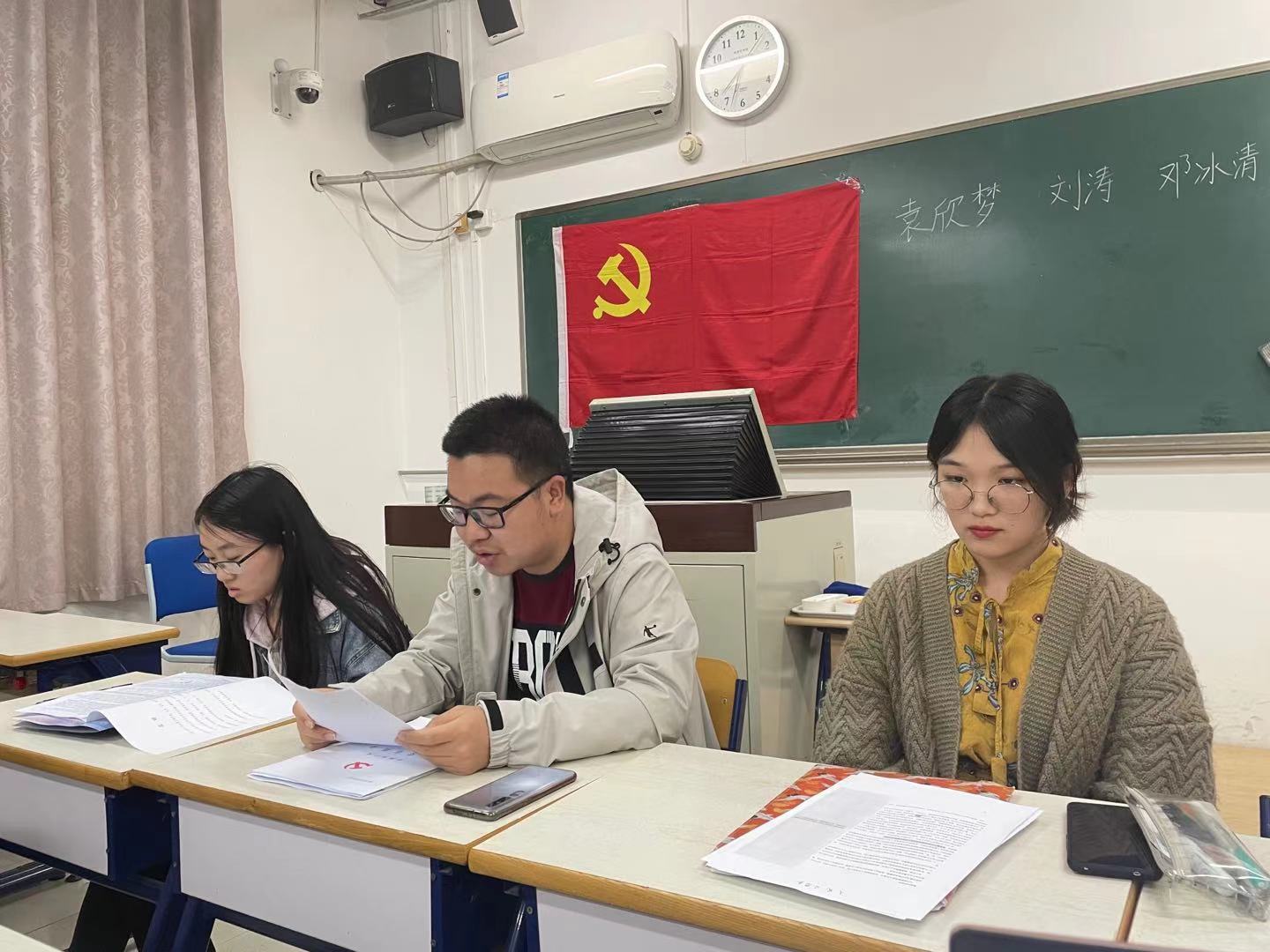 钱羽接续郭沛源的话题,在发言中回顾与认可之前我们党取得的成就,认为我们现在要学好相关思想,在自己的职业岗位上发光发热。
