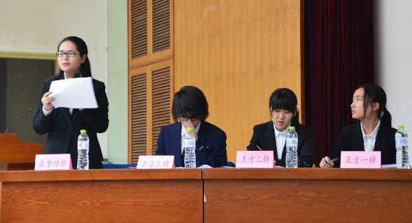 在开篇立论环节中,正方一辩王嘉钰提出,治理水污染重在生活方式的改变,原因有二,第一,改变生活方式的难度更小,对公民利益的损害几乎不存在,而要改变生产方式的话,治污成本投入大。第二,生活方式的改进空间很大。公民环保意识不强,政府监管不严,有很大的进步空间。反方二辩从生活方式改变的途径、生活方式的改变如何作用于污染治理等方面进行了质询。之后,由反方一辩进行开篇立论提出,改变生产方式比改变生活方式带来的治污效果更好,同时也更具可行性与强制性。改变生活方式的主体是百姓,可操作性更小。立论完毕,正方二辩对反方一辩进行质询,我方二辩汤阳针对水污染现状、政府的宣传力度等几个问题提出了质询。