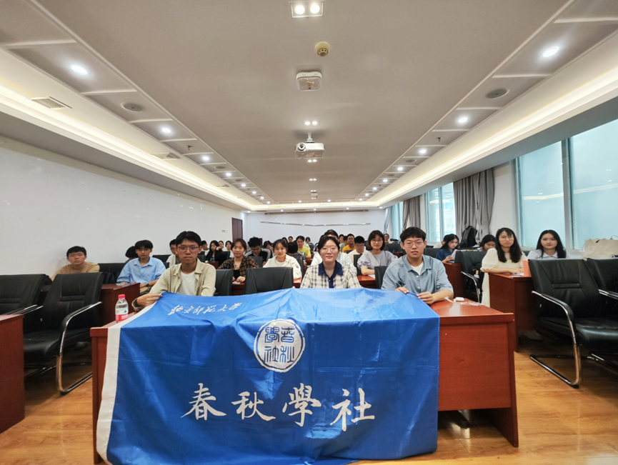 首先,副社长江怡慧同学介绍了本年度招新情况。第40届春秋学社共吸纳新成员35人,除历史学院外,亦有来自社会学院和励耘人文科学实验班的新成员加入。招新工作取得圆满成功。随后,到场嘉宾上台为新老社员致辞。