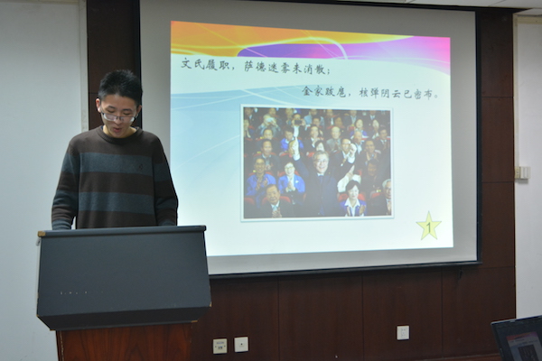 在新老成员总结发言环节中,同学们畅谈论自己这一学期以来的感受。小组2017级新成员们表示,在小组一个学期的集体学习中,学习到了许多系统的时事知识。小组将历史学专业学习与时事研究相结合,让同学们既能够理性地回顾过往历史,又能够清醒而深刻地看待当下,“鉴前世之兴衰,考当今之得失”。他们还特别提到了小组近期举办的“News Today”环球论坛活动,通过这次活动,新同学们学习到了一种“治之以精,而益求其精”的精神。最后,新同学们对小组领导团队成员一学期以来对他们毫无保留的付出与帮助表示了感谢。