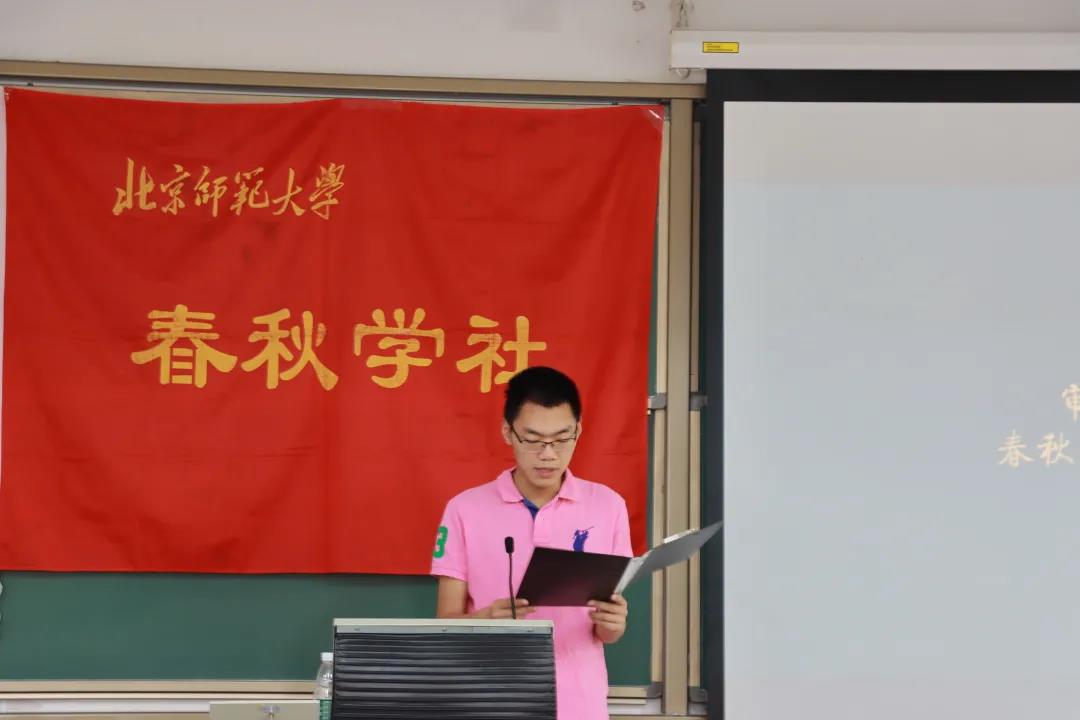 随后,春秋学社第37届社长徐佳炘同学作2020—2021学年春秋学社工作报告,总结回顾了春秋学社一学年的工作,报告经社员表决后一致同意通过。春秋学社第37届常务副社长杨晓锐同学宣读北京师范大学春秋学社第二次理事会换届会议选举办法(草案)及总监票人、监票人名单,获得会议表决一致同意通过。接下来,15位候选人依次发言参与竞选,总结过去的工作,根据自己竞选的职位阐述个人优势,畅谈对未来工作的设想,为学社的发展建言献策。参会代表认真聆听并进行匿名投票。