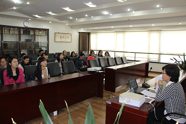 参观结束后,中华书局历史编辑室的李爽老师和市场部的李忠良老师与同学们进行了座谈。李爽老师从中华书局的古籍整理传统、中华书局历史类文献、中华书局大型文献以及中华经典古籍库四个方面详细介绍了中华书局在古籍整理方面所做出的贡献。李忠良老师就电子化阅读、中华书局在数字化方面的努力等问题回答了同学们的提问,独到而深刻的见解让在场的同学们收获良多。当被问到纸质书的发展未来时,李忠良老师表示,他相信人们最终会完成从屏幕到纸质书的回归。