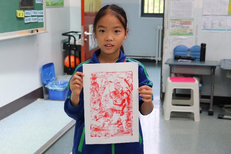 随后,学社的两位小老师亲自示范,向同学们展示了雕版印刷的基本技巧与方法。在老师的悉心指导下,同学们很快掌握了涂墨、刷墨等具体步骤的要领,并开始动手尝试。经过一番努力,同学们很快就成功拓印出了各式各样的图案。
