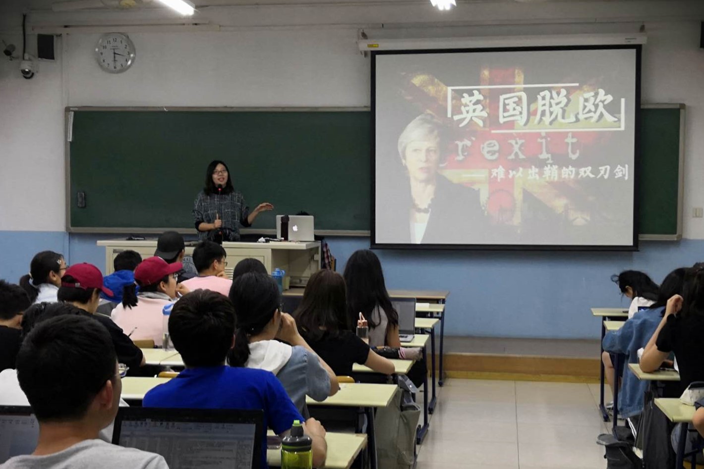 5月13日,应马克思主义学院高超老师邀请,历史学院2018级本科生王冰、熊太波同学走上《思想道德修养与法律基础》课讲台,为同学们带来别开生面的一堂“国际形势专题”课。课堂上,他们为理工类专业的本科生进行题为“英国脱欧——难以出鞘的双刃剑”的授课。王冰同学在课上首先分析了英国脱欧的现今局势,并以此为引,回顾从2013年时任英国首相卡梅伦首次公开谈及脱欧伊始到如今特蕾莎·梅的艰辛谈判,细数每一个节点的艰难跨越——从打开“潘多拉魔盒”的移民问题到贸易问题的“戈尔迪之结”,再到现代巴别塔般的英国议会,生动地展现了英国脱欧过程中的蹒跚前行。