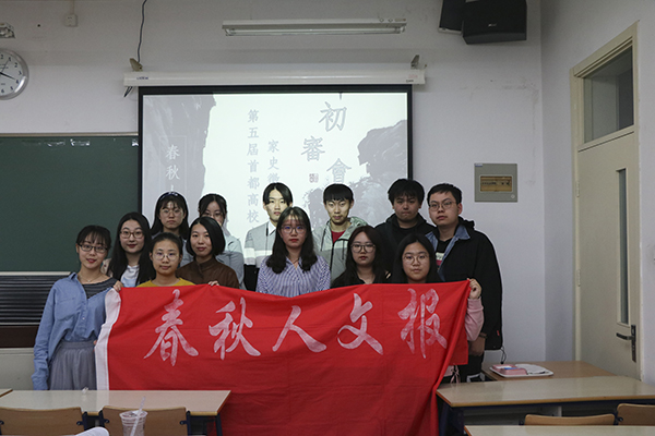 2019年4月14日下午1:30,第五届“首都高校大学生家史征文大赛”初审会在北京师范大学教四108举行。会议由春秋人文报社社长郑济航主持。参加此次会议的协办单位有:中国人民大学历史学院《绎思》、中国社会科学院大学《青春报》、首都师范大学历史学院《鸣报》和清华大学文苑沙龙协会。