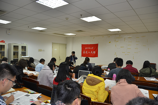 2016年11月8日晚8点,《春秋人文报》第86期报评会和文编交流培训会在主楼A603举行。本次会议的主要内容包括对第86期报纸的内容、排版等做出评价,对社团新成员进行文编培训并对微信公众平台的运营状况进行分析。会议由主编李诗雨主持,全体社员参加了此次会议。