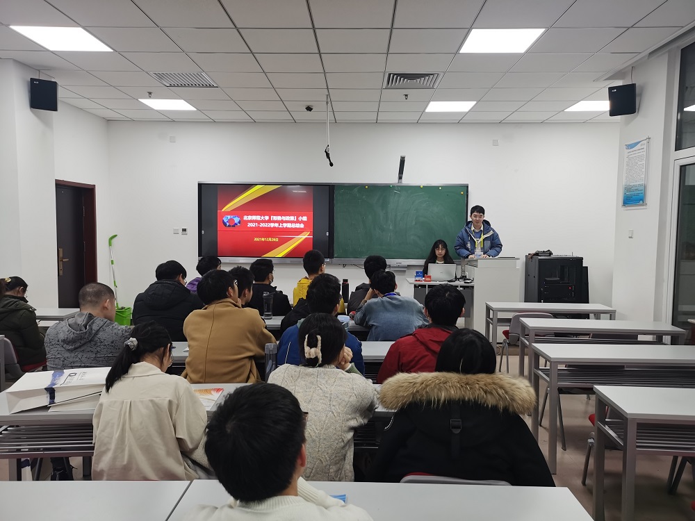最后,组长许宸睿发表总结讲话。他感谢了领导团队与小组前辈们的辛勤付出、小组新成员的热情参与,也反思了大家活动中的不足。他还对小组下学期的活动进行了展望——希望新的一年能为小组成员提供更多新的机会、培养大家更广阔的眼光,并希望大家能更积极地参与活动,续写小组的历史。在组织专员于浩然深情的结束词中,此次大会圆满落幕。