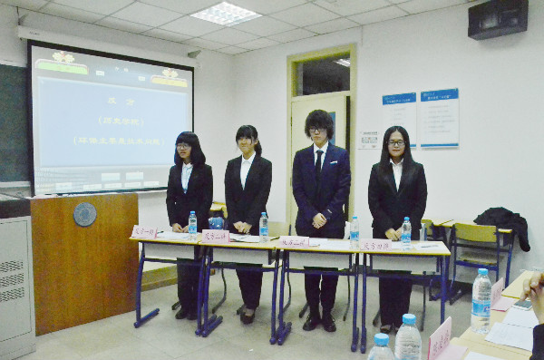 2016年11月12日晚7时,北京师范大学熙言杯新生赛复赛在教二409教室举行,数学科学学院、统计学院数统联队和历史学院鸣鹤辩论队分别作为正反方,围绕“环保主要是观念问题还是技术问题”展开激烈辩论。本场比赛由陈凌岳,刘力维,朱雨馨担任评委。