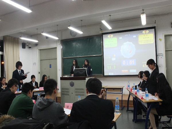 2016年11月27日晚8时许,北京师范大学熙言杯新生辩论赛半决赛在教四306教室举行,历史学院鸣鹤辩论队和教育学部辩论队分别作为正反方,围绕“政府应该/不应该降低企业开发气候能源的现有门槛”展开激烈辩论。本场比赛由杨鹏达、黄文韬、王天超、梁端、李阳担任评委。我方派出的四位辩手为王嘉钰,汤阳,景凡芮,李仪琛。