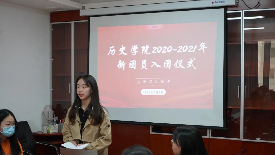 2021年5月6日中午十二时,历史学院2020-2021年度新团员入团仪式在主楼616成功举办。本次新团员入团仪式由历史学院团委组织委员胡欣主持,历史学院团委书记胡小溪老师、历史学院2019级团支部委员会委员、2019级新入团团员潘景怡、王耀悦参加。
