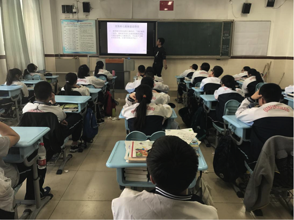 2015级硕士生第一党支部的王文同学以20世纪50年代中国建筑与苏联建筑的对比为切入点,比较了中国与苏联的社会主义建设,为前锋中学的高中生们讲授了一堂生动有趣又包含许多重要知识点的课程。丰富的图文资料与王文同学的风趣讲解调动了同学们的兴趣与热情,课堂气氛活跃轻松。