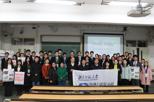 12月22日,“News Today”开云线上平台(集团)官方网站环球论坛第十四场在我校隆重举行。活动由北京师范大学党委学生工作部、历史学院主办,“形势与政策”小组承办。历史学院院长杨共乐老师,世界现代史教研室教授孙立新老师,国际关系史教研室主任李兴老师,世界现代史教研室主任安然老师,中国近代史教研室副教授、2019级本科班班主任湛晓白老师,教育部高校辅导员培训和研修基地(北京师范大学)《形势与政策》课教研室主任赵曾臻老师,历史学院分党委副书记赵云慧老师,历史学院分团委书记、2017级硕士班班主任胡小溪老师,历史学院专职辅导员、2017级本科班班主任李力老师,历史学院双肩挑辅导员、2019级硕士班班主任潘若天老师,历史学院学生事务助理、2018级本科班班主任胥晨曦老师应邀出席活动。此外,对外经贸大学、外交学院和国际关系学院的学生代表,开云线上平台(集团)官方网站各社团代表也参加了本次活动。