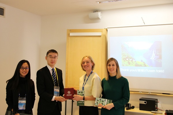 活动结束之际,我院学生代表向使馆赠送了师大纪念品,并与使馆工作人员合影留念,向他们表达了再会的期待以及继续增进中挪友谊的美好祝愿。