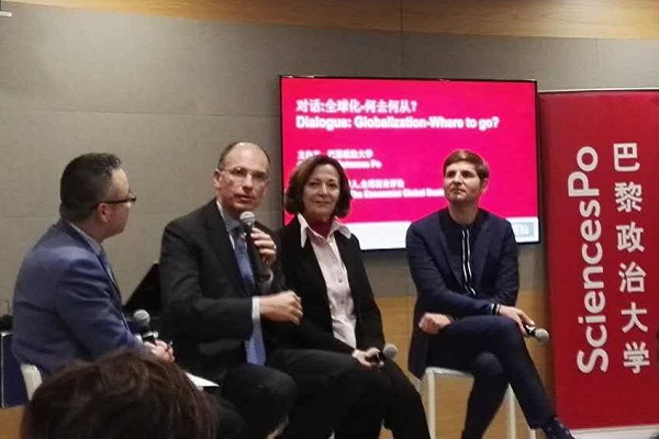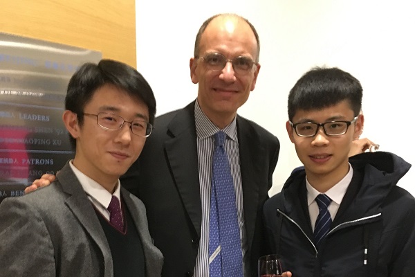 2016年11月3日晚,应巴黎政治大学方面邀请,我院“形势与政策”小组原常务副组长王帅捷、外联顾问王聿闻同学作为首都高校学生代表,赴耶鲁北京中心参加巴黎政治大学举办的“对话意大利前总理:全球化何去何从”主题讲座,与来京访问的意大利前总理恩里克·莱塔(Enrico Letta)面对面交流。参加讲座的还有巴黎政治大学公共事务学院战略委员会主席安娜-玛丽·伊德哈克(Anne-Marie IDRAC)、院长杨·阿尔刚(Yann ALGAN),《经济学人·全球商业评论》主编吴晨等。