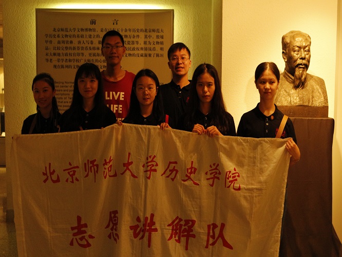 7月19日16时许,历史学院志愿讲解队队长刘铖同学于北京师范大学东门接待了来自广西师范大学校园校史宣讲社带队老师及社长徐小峰同学师生一行11人。随后,刘铖同学带领广西大学的同学们前往北京师范大学形象陈列馆进行参观。此次参观由北师大形象陈列馆资深志愿者陈博洋同学担任讲解。北师大百余年的悠久校史,通过精选的展品展板中的信息,在陈博洋同学详细的讲解下,在广西大学的同学们面前徐徐展开。