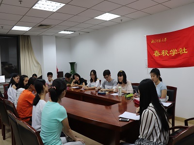 2018年9月6日晚8:45,春秋学社在主楼B609举行社团招新面试,本次面试由常务副社长汤阳主持,前任社长洪英、社长陈兴、副社长王天昊、翟明杰及各部门部长参与了面试工作。