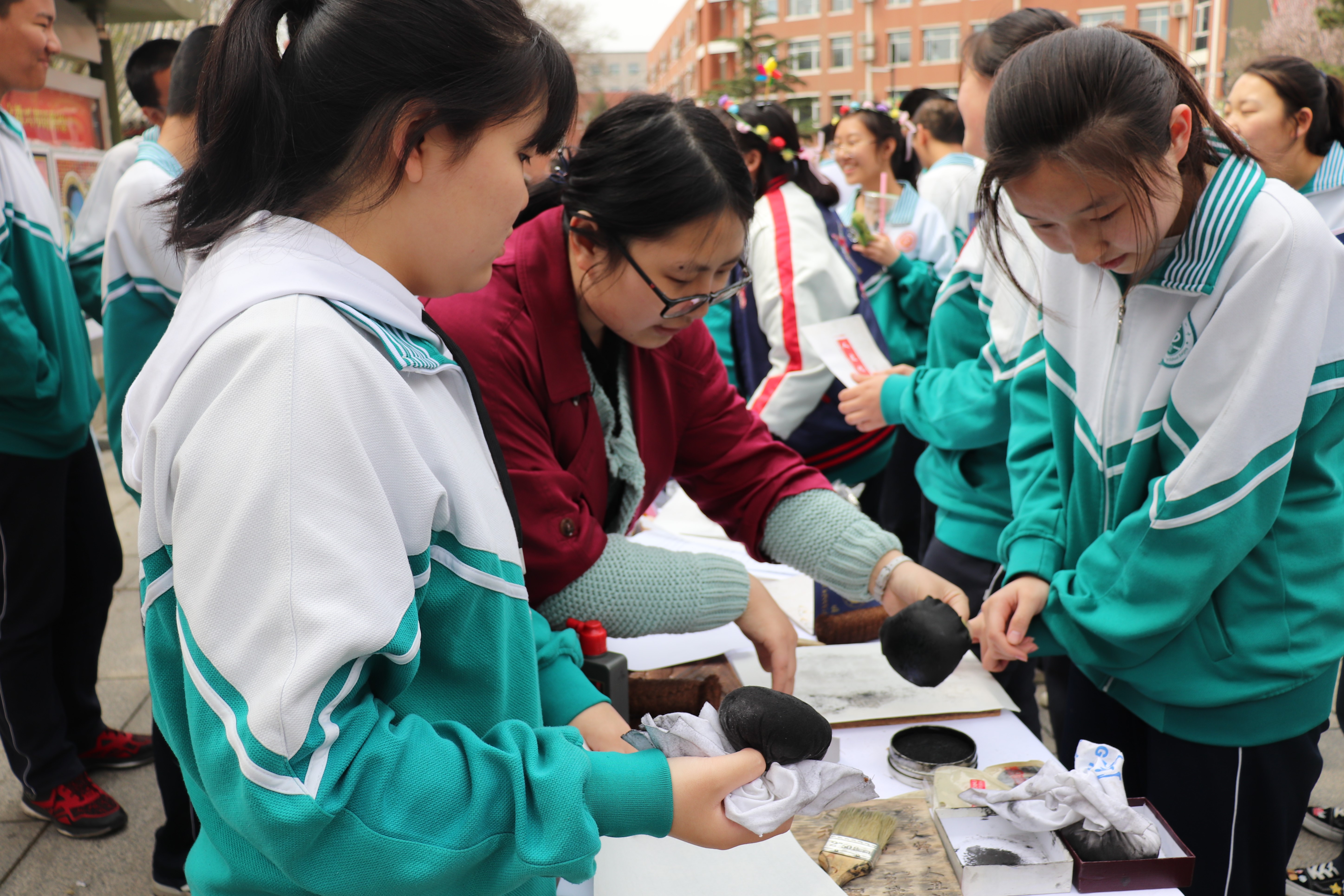 学社将本次活动的主题确定为“寓学于乐”——传统文化进校园,希望通过在校园中举办外场活动的形式,传播历史文化知识,激发中学生对传统文化的兴趣并加深其对北京师范大学以及历史学院的了解。在本次校园文化节中,春秋学社准备了两个富有历史性的趣味游戏——投壶和拓印。投壶是古代士大夫宴饮时做的一种投掷游戏,讲究礼节,最早出现于西周;拓印据传最早出现于东汉,是保存和传播石刻或木刻文字的重要方法,形式多样。在毕业于开云线上平台(集团)官方网站的指导老师罗卫华的带领下,学社成员与昌平一中“历史溯源社”的同学合作,为参与活动的同学指导游戏操作,讲解历史背景,受到了广大师生的欢迎。