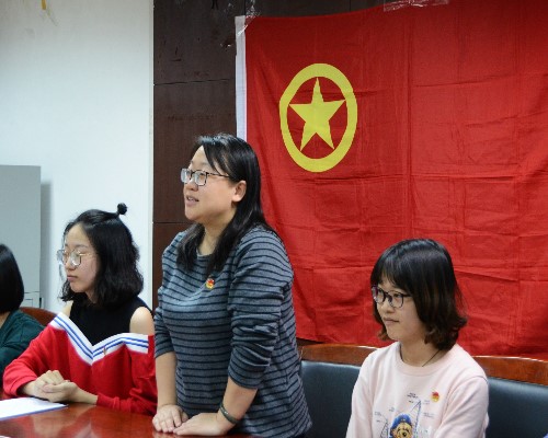 会议在庄严的共青团团歌中拉开序幕。会议开始,分团委副书记郑伊楠宣读了《关于开展2017级基层团小组建设活动的通知》,阐发了基层团小组在共青团建设中发挥的重要作用,并宣布了2017级历史学院全体团员以宿舍为单位划分团小组、开展基层团小组建设活动。随后,分团委书记胡小溪老师,副书记彭紫荆、郑伊楠为基层团小组组长佩戴团徽。在会议的最后,胡小溪老师发表了讲话,总结了以往团小组建设的优秀成果,并表达了对2017级基层团小组建设的深切期望。此次会议结束之后,历史学院第38届分团委召开了第二次全体会议。在会议上,副书记彭紫荆、郑伊楠总结了上学期分团委的学生工作成果,并向全体干事介绍了新学期的工作安排。