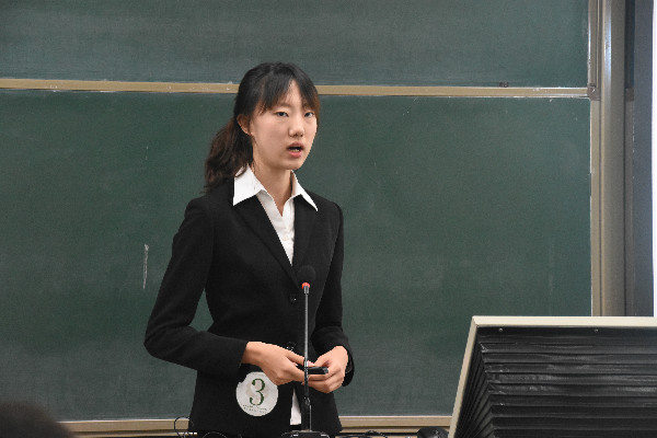 另一位选手田欣怡讲述的课题为“1929-1933资本主义世界经济危机爆发原因探究”。田欣怡主要依托板书,运用了大量对比材料深入分析和探讨了1929年的社会状况,思路清晰,内容发人深省。“鉴前世之兴衰,考当今之得失”,田欣怡的讲课可以说是平衡了历史和现实的关系,给观众带来不少思考。