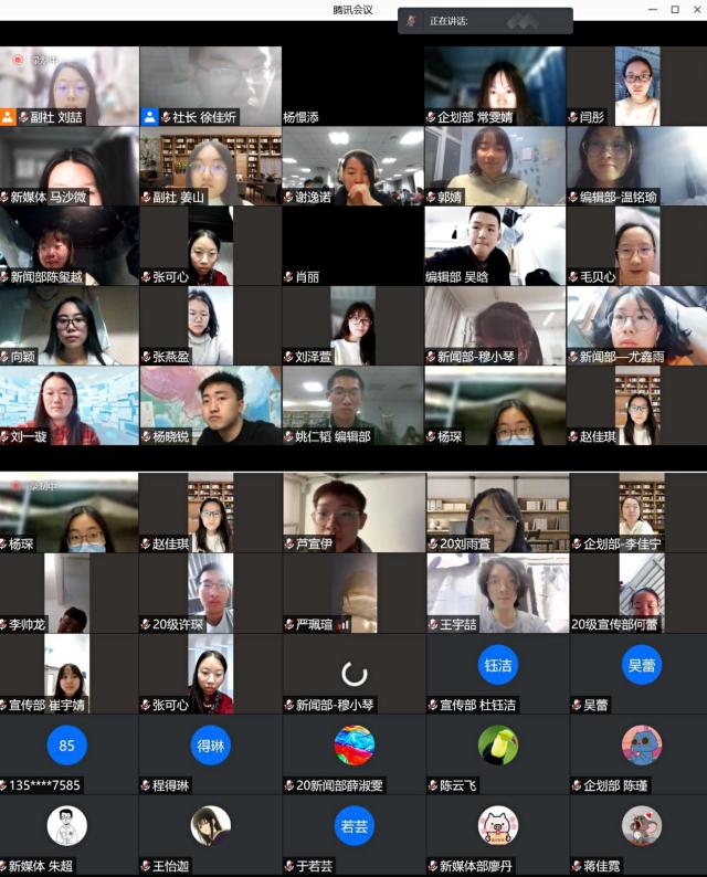 12月26日晚八点,春秋学社第二次全员大会成功举办,应学校疫情防控要求,此次全员大会通过腾讯会议线上形式举办,全社成员积极参加。