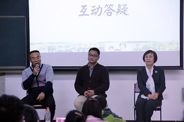 最后是交流与提问环节,左玉河老师、孙燕京老师和李远江老师与同学们就人物采访技巧、口述史写作的专业性和口述史史料运用等问题进行了深入浅出地探讨,现场互动气氛热烈。嘉宾们在解答问题的同时也鼓励同学们积极参加家史征文大赛,书写家族的历史。下午5时左右活动进入尾声,工作人员向到场嘉宾赠送纪念品并与工作人员、各高校代表合影留念,活动至此圆满成功。
