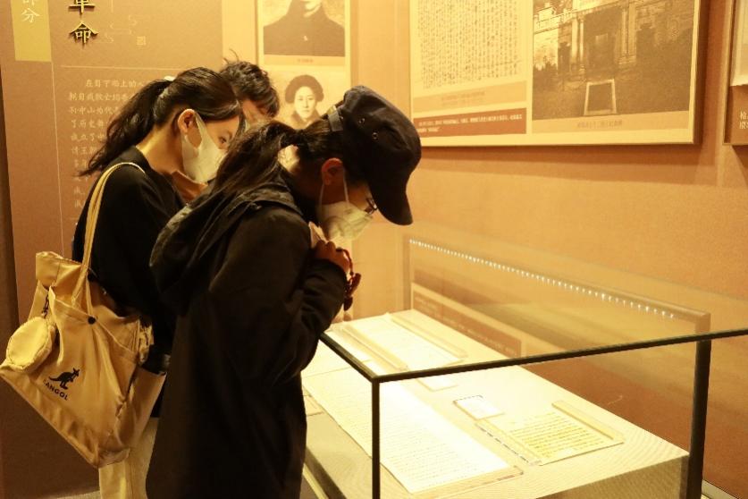 最后,同学们参观了西配殿布设的“抗争与求索——从鸦片战争到辛亥革命档案文献展”。习近平总书记指出,近代以来,面对深重的苦难“中国人民挺起脊梁、奋起抗争,以百折不挠的精神,进行了一场场气壮山河的斗争,谱写了一曲曲可歌可泣的史诗。”殿内陈列的林则徐关于虎门销烟完竣的奏折、义和团传单、慈禧以光绪帝名义颁布的议和谕旨等珍贵文献,沉重刻画了近代以来中华民族的屈辱史、灾难史,也充分展现了中国人民追求民族独立和国家富强的探索史、奋斗史。