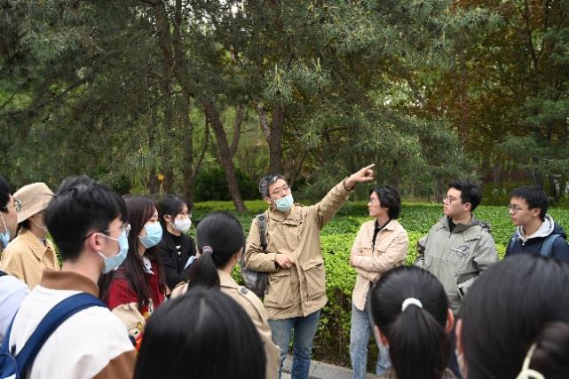 在联络员的带领下,同学们以小组为单位,有序抵达南池子大街。参观前,华喆老师在菖蒲河公园为同学们介绍了皇史宬的发展沿革和历史地位。“宬”即藏书的屋子,皇史宬始建于明朝嘉靖年间,珍藏实录、圣训等皇家典籍,是我国现存最古老、最完整的皇家档案库建筑群,现由中国第一历史档案馆管理。皇史宬曾属的东苑见证了“夺门之变”等重要历史事件,清代学者也经常出入往返翰林院、皇史宬、南三所一线,了解皇史宬的功能和地位对历史研究有重要意义。