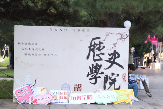 报到前一周,学院领导老师及志愿者已为迎接新生的到来做好了充足的准备工作,并为新生们精心准备了院衫和充满历史学院特色的新生大礼包。9月1日早上6点左右,第一位新生来到历史学院迎新点,在志愿者引导下顺利完成身份核验、电子报到、新生材料领取等流程,并在学院展板前留下了“开学第一照”。