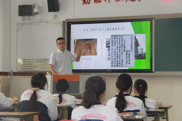 在活动中,2014级博士生于泳、张楠、崔幸代表所在小组为高二(1)班的同学们作了题为《<三国演义>:大众眼中的政治军事教科书》的学术讲座。主讲人于泳从《三国志》到《三国演义》、《三国演义》中的政治史,《三国演义》中的智谋与军事史、《三国演义》对后世的影响等几个方面切入,通过对比正史和演义、深入分析了《三国志》和《三国演义》所呈现出不同的精神世界和历史图景,使同学们在欣赏《三国演义》精彩故事的同时,也对三国时期的历史有了更加直观的了解。