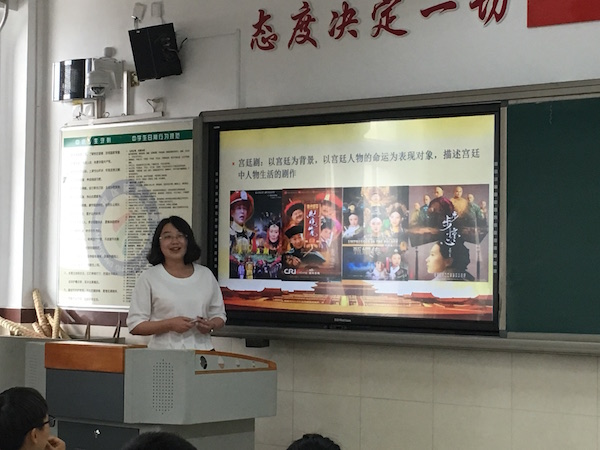 2014级硕士生李颖楠、刘雨桐、陈骁代表所在小组为高二(2)班的同学作了题为《清宫剧中的中国历史——关于称谓那些事》的历史知识讲座。主讲人李颖楠将历史知识同当下流行的“宫廷戏”结合起来,以历史类影视作品中的称谓错误为切入点,向同学们系统讲述了清代“帝号、谥号和年号”“奴才与臣”“宦官与太监”等称谓的不同,寓教于乐。这种别开生面的授课方式大大激发了同学们的学习兴趣,受到了老师和同学们的一致好评。