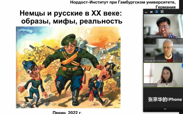 2022年5月28日及5月29日下午,北京师范大学“励耘学术讲堂”历史学系列讲座在线举行。德国汉堡大学东北德意志历史与文化研究所副所长维克多·杰宁哥豪斯(Victor Dönninghaus)教授做了《认识异邦:18—19世纪德国人眼中的俄罗斯形象》、《神话与现实:20世纪的德国与俄国的形象互识》两场系列讲座,讲座由我院张建华教授主持,博士生彭乐梅、博士生李红娟做现场翻译。我院和珠海校区师生及校外诸多高校观众通过zoom收看讲座,人数最多时达120多人次。