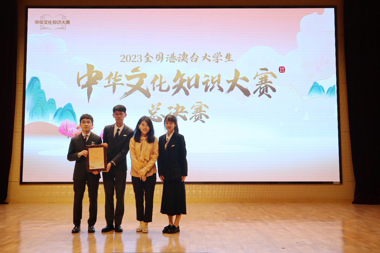 5月21日,由教育部港澳台事务办公室主办的2023全国港澳台大学生中华文化知识大赛总决赛在复旦大学举行。由我院2020级本科生洪传凯、2022级本科生李晨舟和教育学部2020级本科生吴梦琪和组成的代表队表现优异,在半决赛中以小组第一的成绩出线后,荣获“全国十强”和最佳组织奖。