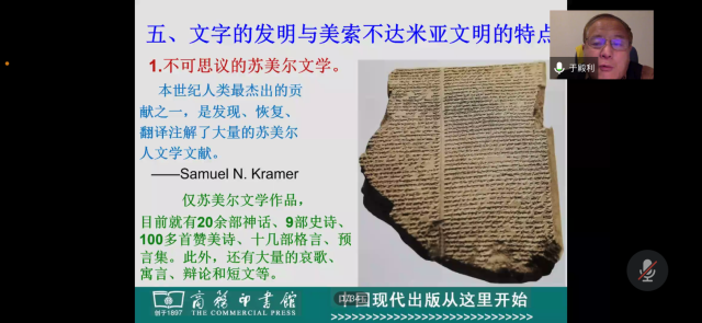 最后,于殿利教授总结了文字的发明与美索不达米亚文明的特点。苏美尔文字创造了不可思议的苏美尔文学、发达的法律文明、流芳千古的历史碑铭及造福后代的科学技术,对后世文明产生了重要影响。