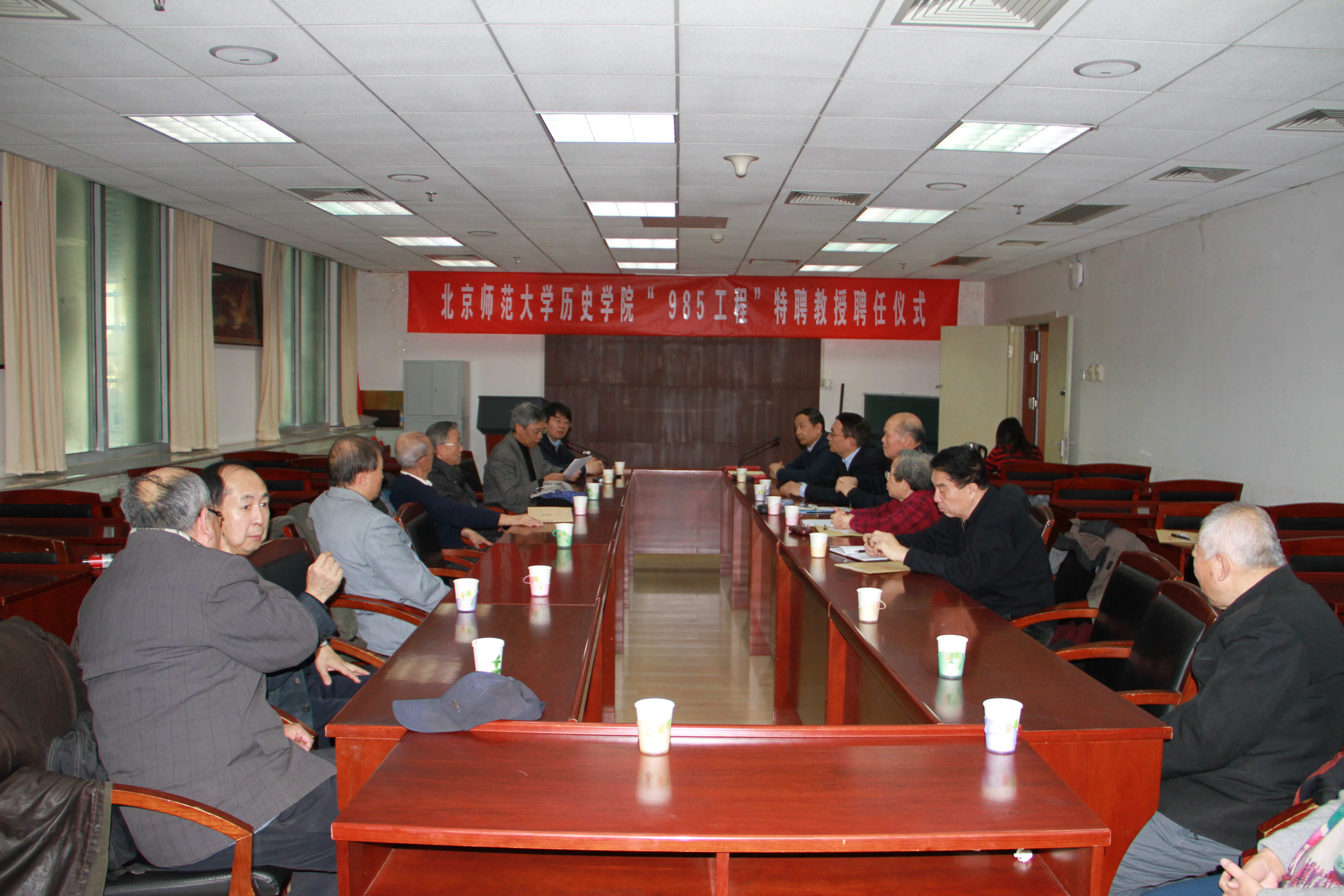 2015年1月16日,历史学院在主楼600会议室举行了“985工程”特聘教授聘任仪式和座谈会,历史学院院长杨共乐教授、分党委书记耿向东研究员、副院长李帆教授出席了会议。此次受聘并应邀前来参加座谈会的“985工程”特聘教授有乔治忠教授、曹定云教授、陈梧桐教授、刘一曼教授、王和教授、王宇信教授、陈智超教授、邹兆辰教授、廖学盛教授、李建平教授、李志英教授等。
