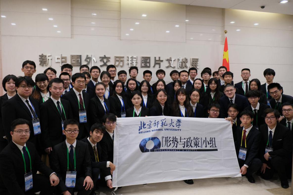 11月22日下午,我院学生前往外交部,参观新中国外交历程图片文献展,旁听了外交部例行记者会。“形势与政策”小组组长李远哲,原组长许宸睿,原常务副组长杨憬添,原秘书长郭婧,原学研专员周逸峰,第十五、十六、十七届领导团队成员,2023级新成员和部分老成员代表,以及第十二、十三届“博古通今胸怀天下”北京师范大学时事知识竞赛总决赛“最佳风采奖”得主代表参加了活动。