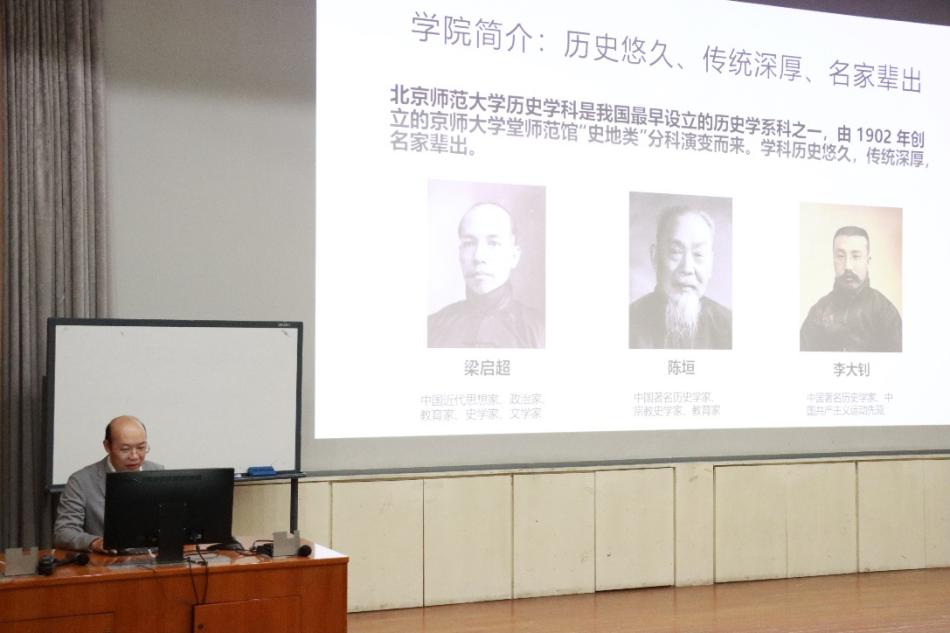 黄国辉老师为本科生开展入学教育。他从学院及专业、培养方案、保研细则等方面向本科新生做了历史学院人才培养工作的介绍。黄国辉老师结合学院发展历史和现状,全方位讲解了本科生阶段的课程结构、修读要求和科研训练等内容。他还特别提醒学生要注意各方面安全、学会心理调适,过好丰富多彩的大学生活。