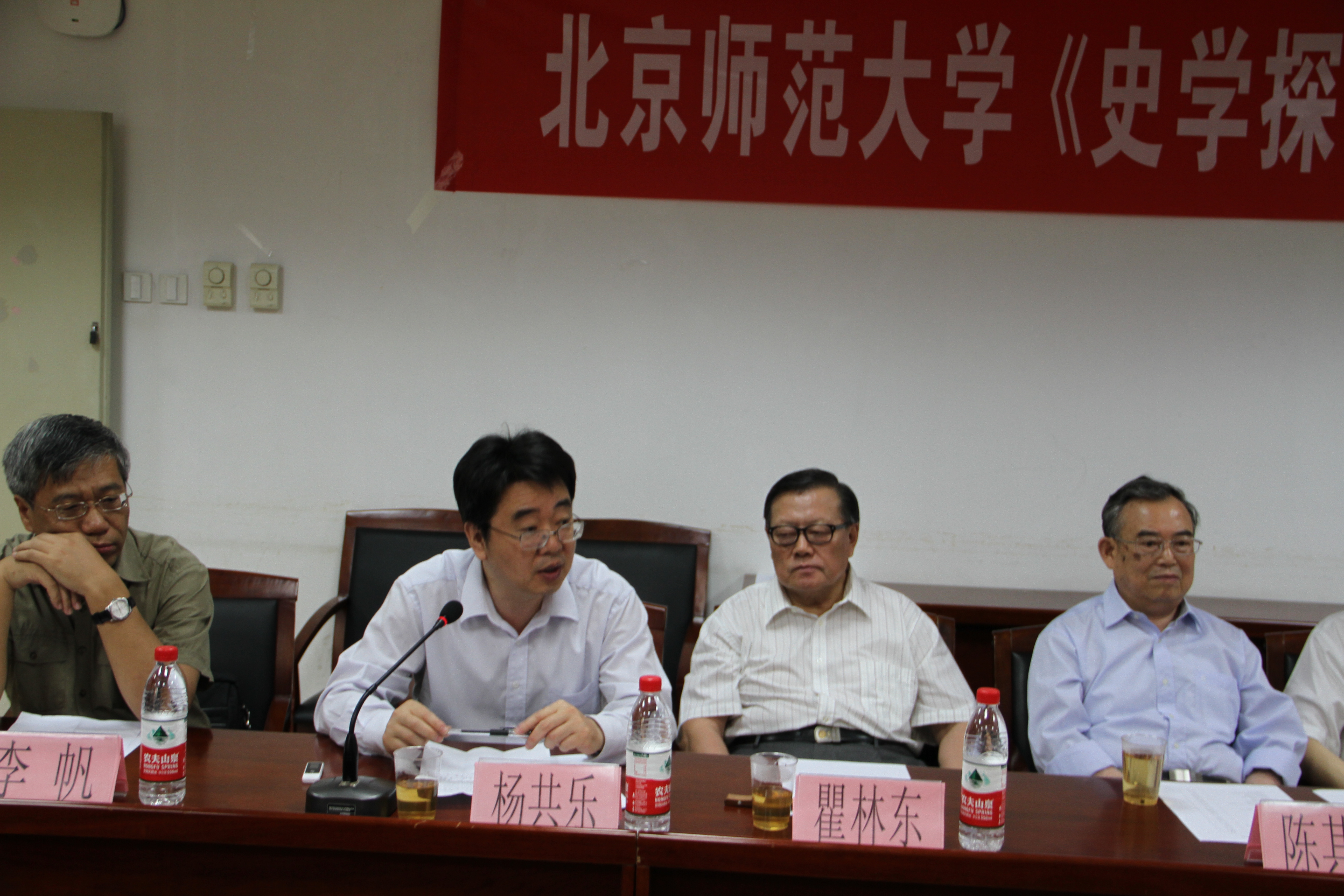会上,历史学院院长杨共乐、出版集团党委书记李艳辉首先分别发表讲话,祝贺《史学探索丛书》六十册的出版。在此后的学术研讨环节中,与会者纷纷发言。瞿林东教授指出,近年来历史学院学术著作出版的丰硕成果,彰显了我院学术群体的创造力,鼓励大家秉承白寿彝先生的治学方法,在现有的基础上进一步提高学术水平。陈其泰教授认为,这些成绩的取得不仅是老师的努力、学院的推动和出版社支持的结果,更是师大历史学院几代人近一个世纪的累积。郑师渠教授主张将学术研究的“质”与“量”统一起来,呼吁各位老师继续心无旁骛,把学术发展放在第一位,注意把握学术自身的价值,走学术发展之正道。耿向东老师鼓励中青年教师多出成果,以进一步增强历史学院的学术实力。杨共乐教授表示,学院会为教师的学术研究创造更好的条件,同时呼吁青年教师学习老一辈学者的治学精神,担负起学院未来学术发展的重任。最后,李帆教授对此次研讨会进行了总结,并对与会人员的出席和发言表示感谢。