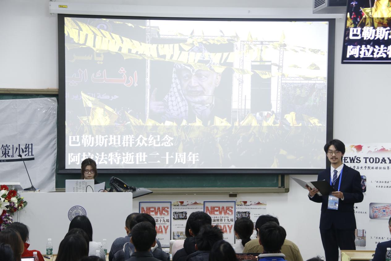 活动中,“形势与政策”小组2024级新成员分为三组,围绕日本社情、美国大选、中东和平等国际热点话题,结合历史与现实进行主题展示。