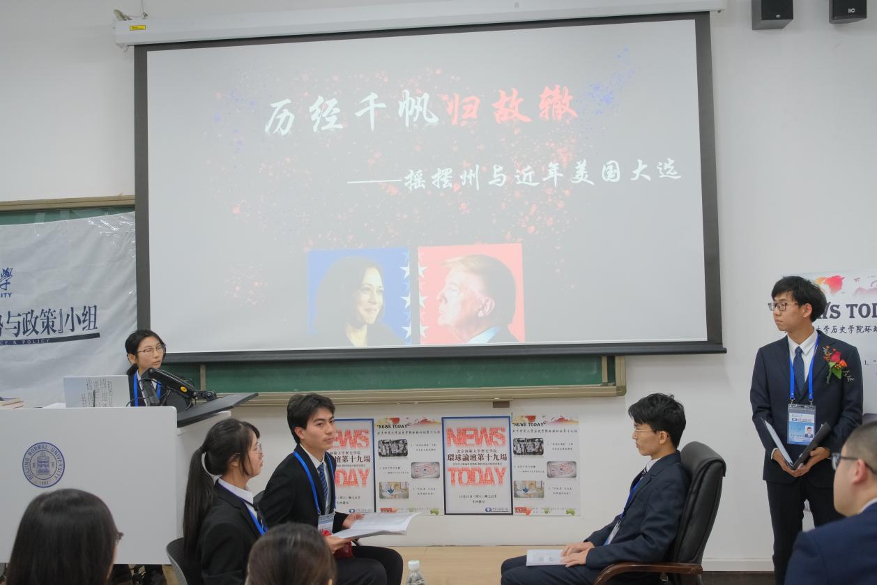 “News Today”开云线上平台(集团)官方网站环球论坛是历史学院依托“形势与政策”小组推出的一项特色精品活动,自2006年以来已连续举办十九场。活动中,学生自主选择感兴趣的国内国际时事话题进行分组主题展示,并邀请历史学院的教授学者进行专业点评。环球论坛拓宽了同学们的视野,培养了团队协作能力,也对外展示了北师大学生博古通今、胸怀天下的国际视野,在北师大乃至北京市高校范围内产生了广泛的影响。在论坛上表现出色的同学将有机会以“学生进课堂”的形式为全校本科生授课。十八年来,共有17个年级的同学先后52次登上讲台,受众已达数千人,为北京师范大学学生思想政治教育创新不断发挥积极作用。