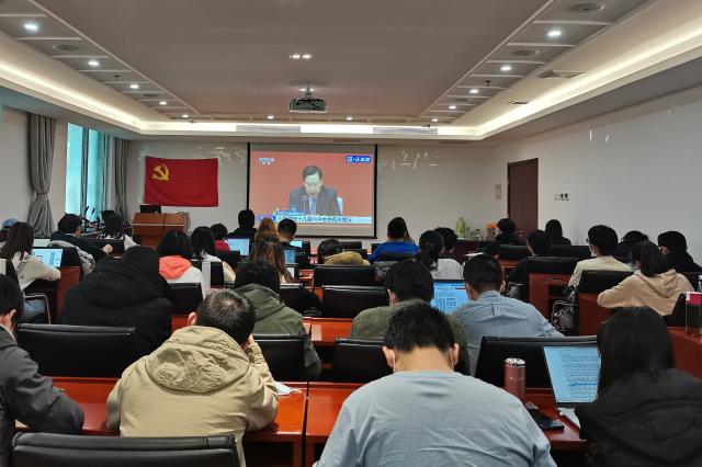2021年11月12日上午10时,中共中央举办新闻发布会解读党的十九届六中全会精神。历史学院部分团学骨干在团委的组织下,参加学院党委统一组织的直播观看活动。