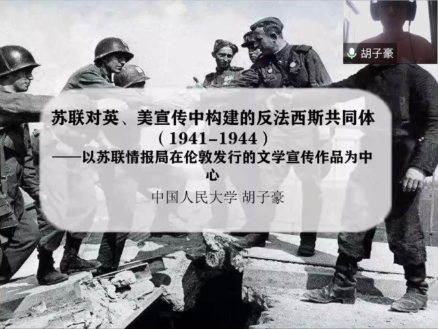 华南师范大学李嘉勋同学的发言主题是“胡椒的全球化和平民化——从郑和下西洋到大航海时代”(评议人:赵佳琳),中国人民大学胡子豪同学介绍了他对“苏联对英美宣传中构建的反法西斯共同体”的研究(评议人:赵万鑫),浙江大学易恒同学做“走向干预世界人口增长:美国国际人口政策的出台(1965-1975)”的发言(评议人:侯方晨),西北大学母仕洪同学对“西方的伊朗史研究:缘起、现状和发展趋向”进行了梳理(评议人:孙佳)。同学们各抒己见,畅所欲言,吴愁、张建华、刘少楠、安然等老师分别就相关文章提出了具有启发性的指导意见。