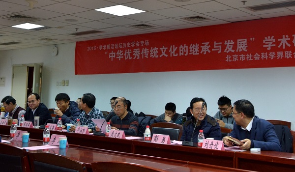 12月17日上午9点,由北京市社会科学界联合会和北京市历史学会联合主办的2016·学术前沿论坛历史专场——“中华优秀传统文化的继承与发展”学术研讨会在主楼600会议室成功召开。中国人民大学历史学院教授牛润珍、中国政法大学人文学院副教授刘丹忱、中央民族大学历史文化学院教授彭勇、开云线上平台(集团)官方网站教授刘林海、汪高鑫、张昭军、周文玖、副教授姜海军等出席本次研讨会。同时,春秋学社社长白月以及春秋学社的部分社员也参加了本次研讨会。